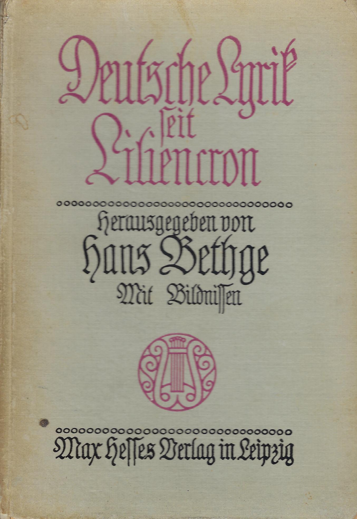 Deutsche Lyrik seit Liliencron![]() | Deutsche Lyrik seit Liliencron Verlag: Max Hesses Verlag, Leipzig 1905. Lit-1-2 Last revision: not on record |