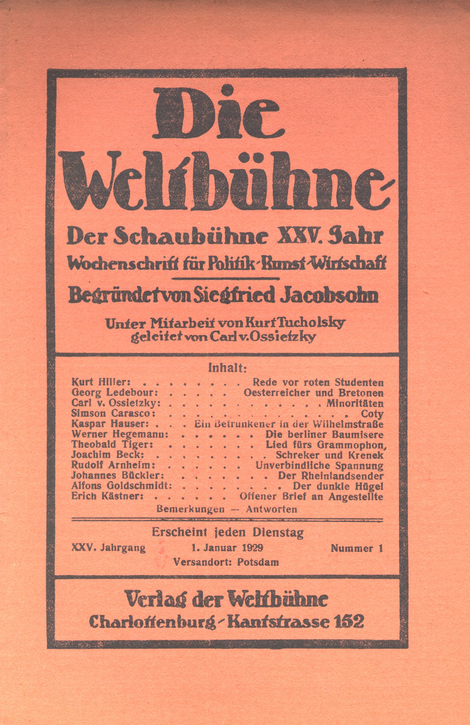 Die Weltbühne 1929![]() | Die Weltbühne 1929 Verlag: Verlag der Weltbühne, Berlin-Charlottenburg 1929. Archivbox Weltbühne Last revision: not on record |