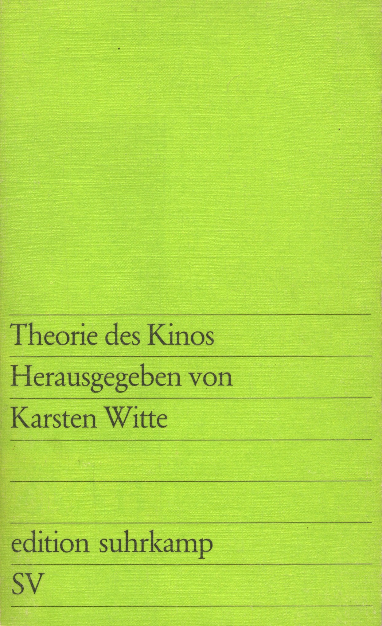 Theorie des Kinos![]() | Theorie des Kinos Reihe: edition suhrkamp 557 Verlag: Suhrkamp Verlag, Frankfurt am Main 1973. Film-Tabu Last revision: not on record |