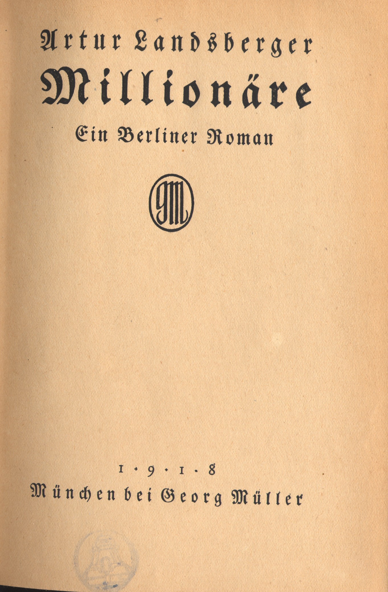 | | Zusatz-Titel: | Ein Berliner Roman | | 17, - 8°, 390 pg, OLn | | Verlag: | Georg Müller, München, 1918 | | Schlagworte: | Berlin | | Standort: | Gal-5-1: | | Inv Number | 2339: |