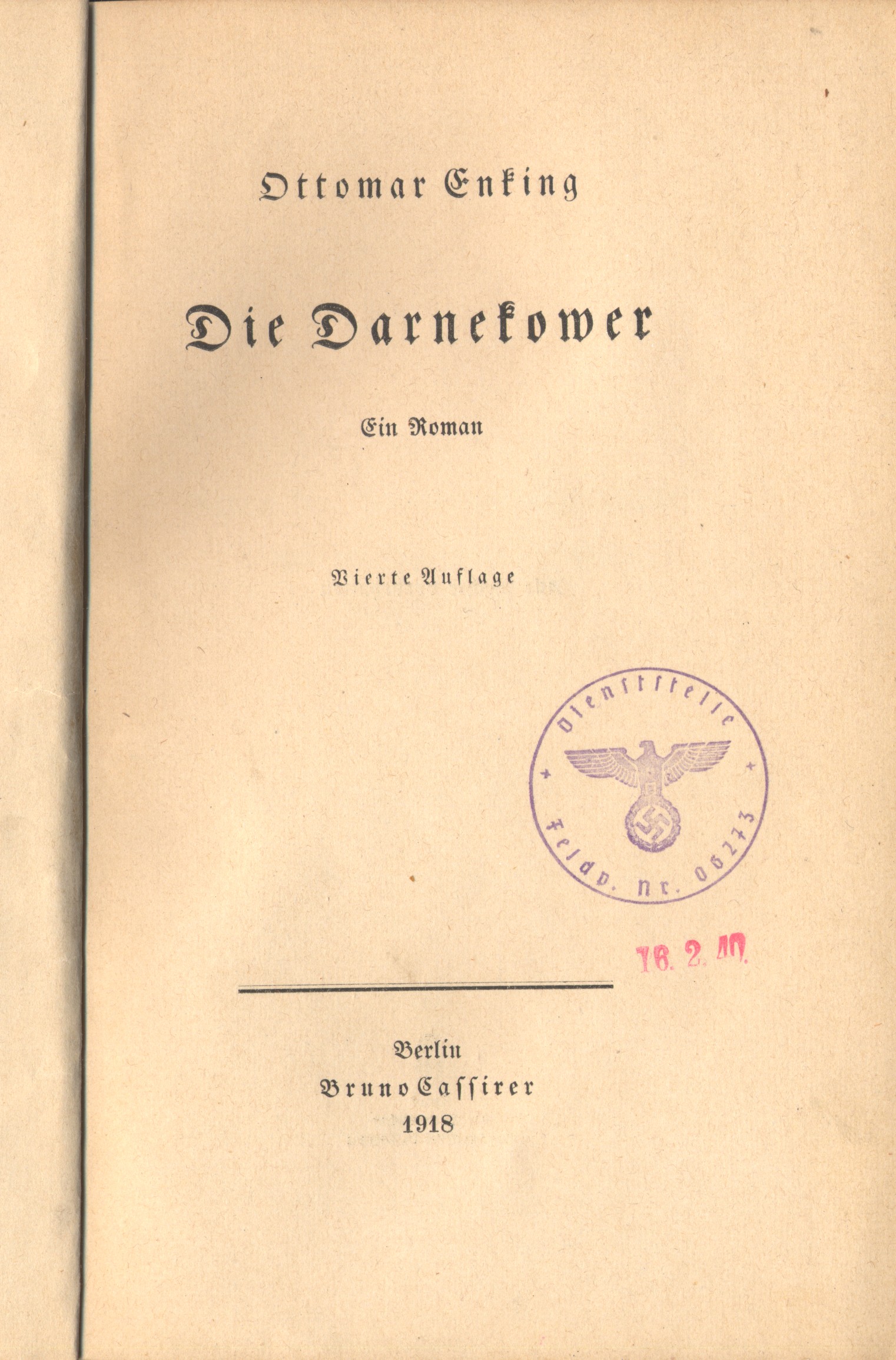 Die DarnekowerAutor(en): Ottomar Enking [Autor]4, - 8°, 431 pg, OHLwnd Verlag: Bruno Cassirer, Berlin, 1918Standort: Lit-2-2:Inv Number 450: Doublette: 1Bemerkungen:Etwas schief, Einband unfrisch, NS Feldpoststempel auf TitelKeine Bewertung Die Darnekower - KinoTV © April 5, 2026 by Unicorn MediaThis page loaded in 0.00012 seconds.